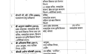 IAS अधिकारियों की नई पद स्थापना, मनीष सिंह तकनीकी शिक्षा कौशल विकास एवं रोजगार विभाग और प्रमुख सचिव मध्य प्रदेश शासन खेल एवं युवा कल्याण विभाग अतिरिक्त प्रभाव