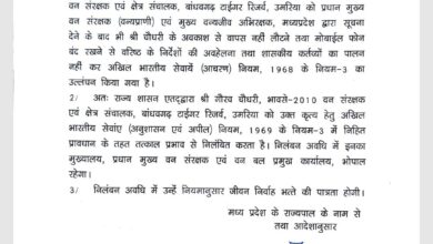 बांधवगढ़ टाइगर रिजर्व में 10 जंगली हाथियों की मृत्यु संबंधी प्रकरण की जांच में गौरव चौधरी वन संरक्षक एवं क्षेत्र…