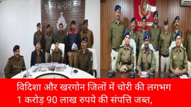 विदिशा और खरगोन जिलों में चोरी की लगभग 1 करोड़ 90 लाख रुपये की संपत्ति जब्त,मध्यप्रदेश पुलिस ने डकैती और चोरी की दो बड़ी वारदातों का किया खुलासा