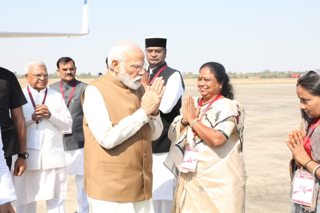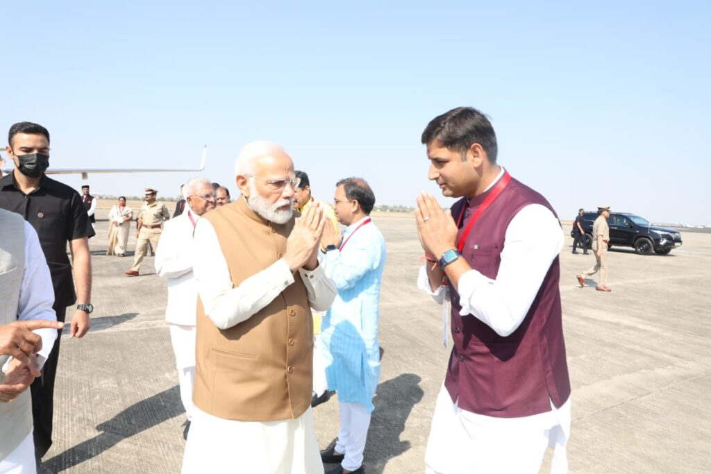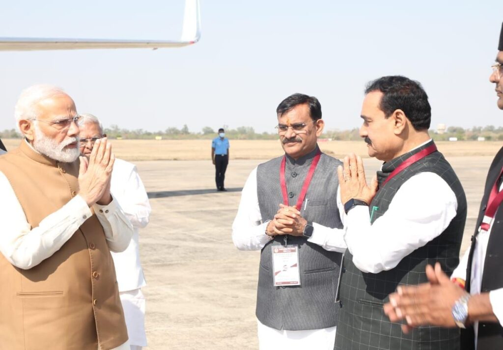 प्रधानमंत्री मोदी का भोपाल के लालपरेड मैदान स्थित हैलीपेड पर भाजपा के प्रदेश अध्यक्ष और सांसद वीडी शर्मा, गृह व संसदीय मंत्री नरोत्तम मिश्रा, भोपाल जिले के प्रभारी मंत्री भूपेंद्र सिंह, मंत्री विश्वास सारंग, अतिरिक्त पुलिस आयुक्त सचिन अतुलकर सहित कई गणमान्य लोगों ने स्वागत किया। मोदी यहां छह घंटे के प्रवास के दौरान कंबाइंड कमांडर कांफ्रेंस 2023 और भोपाल के रानी कमलापति रेलवे स्टेशन से दिल्ली के बीच आज से शुरू हो रही वंदे भारत एक्सप्रेस ट्रेन को शुभारंभ कार्यक्रम में शामिल होंगे।