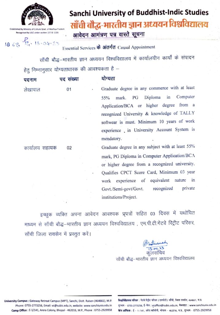 सांची विश्वविद्यालय में इस तरह से भी विज्ञापन निकलते हैं और गुपचुप तरीके से चहेतों को दी जाती है।नोकरी। वही आवेदकों को न्यूनतम 10 दिन का समय दिया जाना चाहिए लेकिन विश्वविद्यालय सिर्फ 3 दिन का ही समय देता है। ऐसे बाप नहीं चाहता हूं तो वहां पर काम पर लगा सके कहीं ना कहीं मनमानी समझ में आ रही है और चाहतों को नौकरी पर लगाने की बात हैं