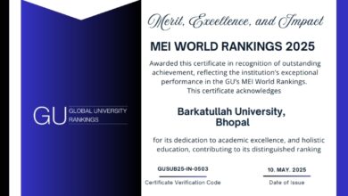 MEI वर्ल्ड रैंकिंग्स 2025 में बरकतुल्लाह विश्वविद्यालय को वैश्विक मान्यता मिली।