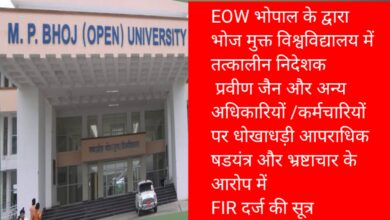 EOW द्वारा भोज मुक्त विश्वविद्यालय में तत्कालीन निदेशक प्रवीण जैन और अन्य अधिकारियों/कर्मचारियों पर धोखाधड़ी, आपराधिक षड्यंत्र, और भ्रष्टाचार के आरोप में FIR दर्ज?