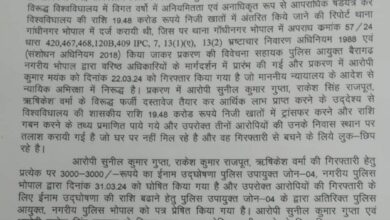 पुलिस की निष्क्रियता पर उठाए सवाल राजीव गांधी प्रौद्योगिकी विश्वविद्यालय भोपाल में करोड़ों रुपए निजी बैंक खातों में डालने के…